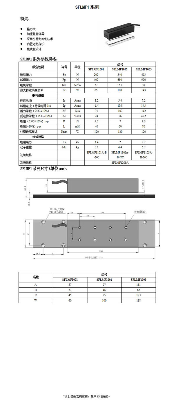 平板直线电机SFLMF1