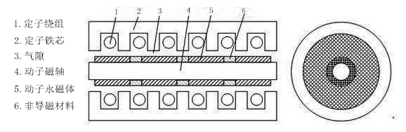 说明:圆筒型永磁直线发电机结构对称,动子径向力相互抵消,运动灵活。而且圆形结构紧凑,电机绕组没有端部,所以没有横向端部效应,只存在纵向端部效应,大大提高了定子绕组的利用率。
